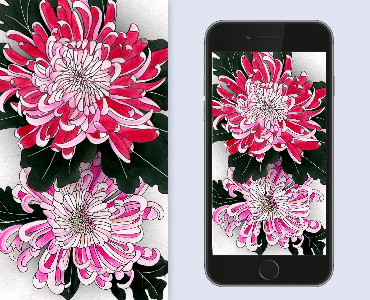 I did this little wallpaper for iPhone from my chrysanthemum's drawing. You can download it on my website :