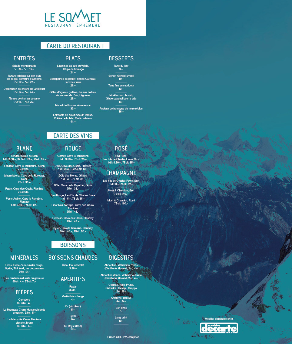 Création d'un logo pour le restaurant éphémère "Le Sommet" ainsi qu'un carte de menu.