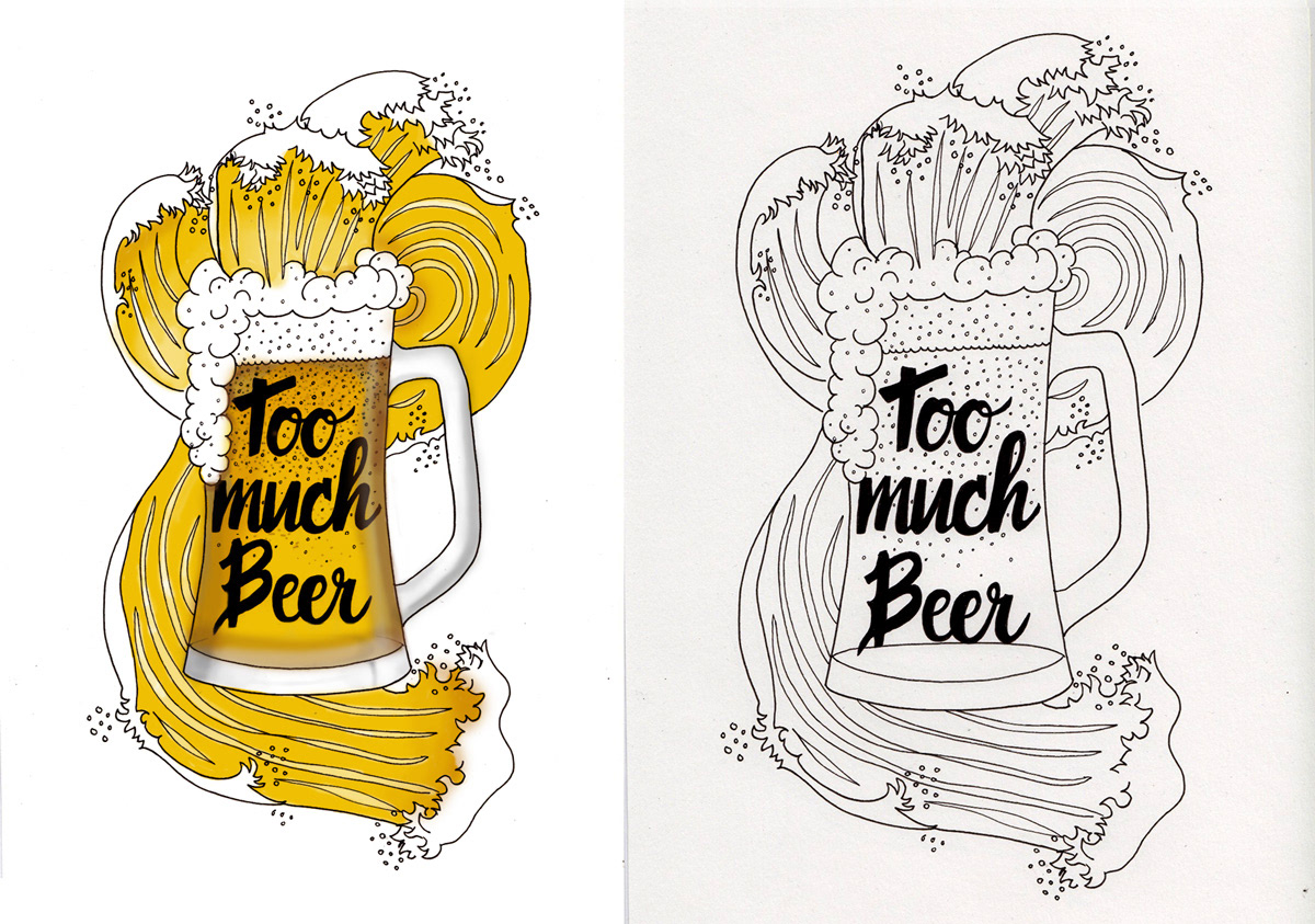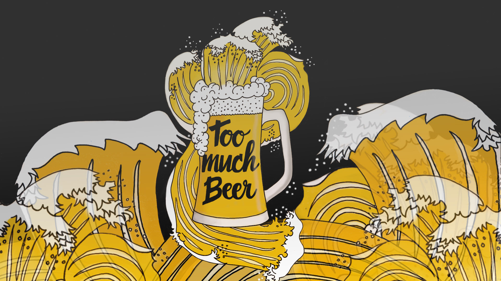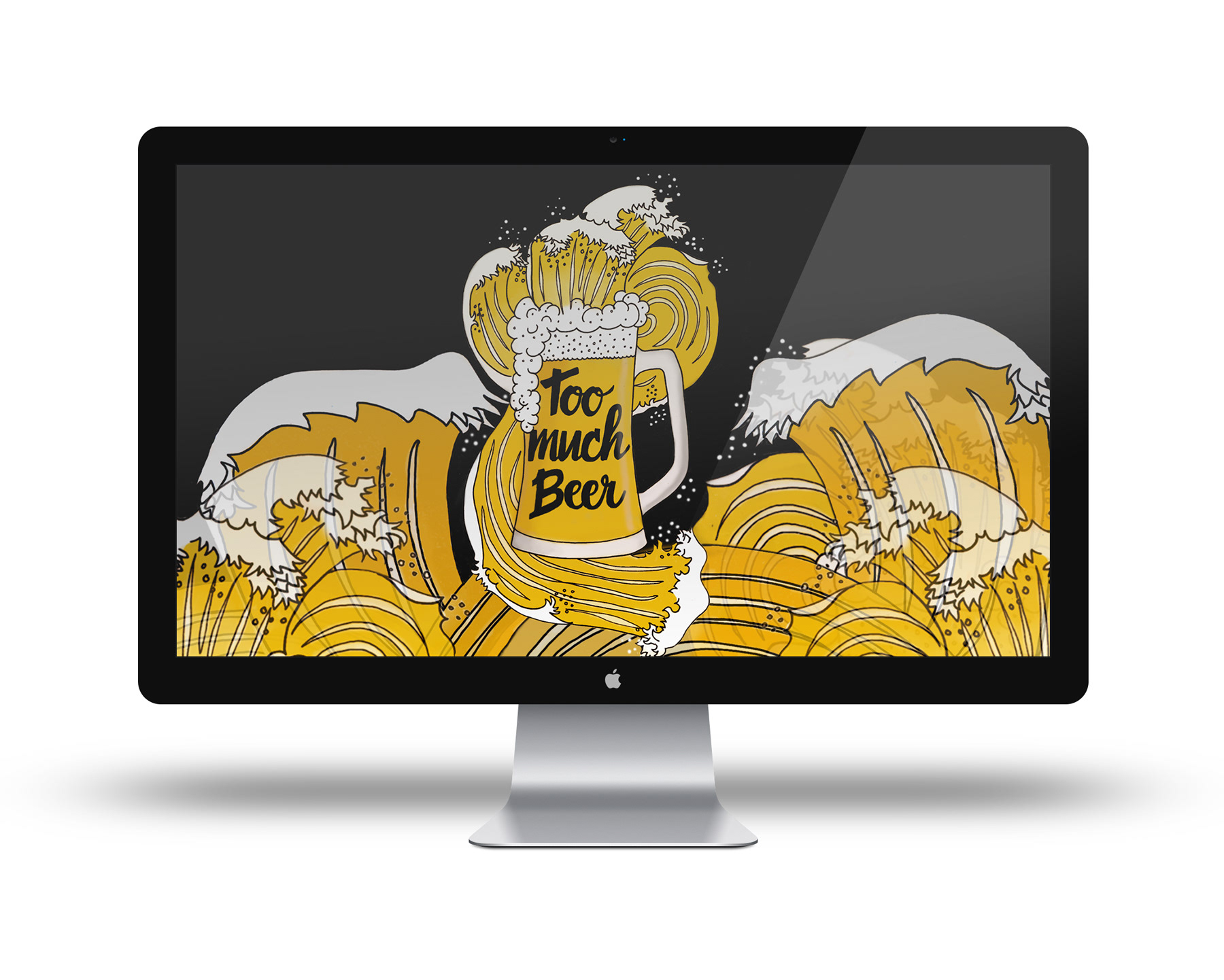 Illustration for a Wallpaper 1920x1018. Concept of waves getting out of the mug because there is Too much beer